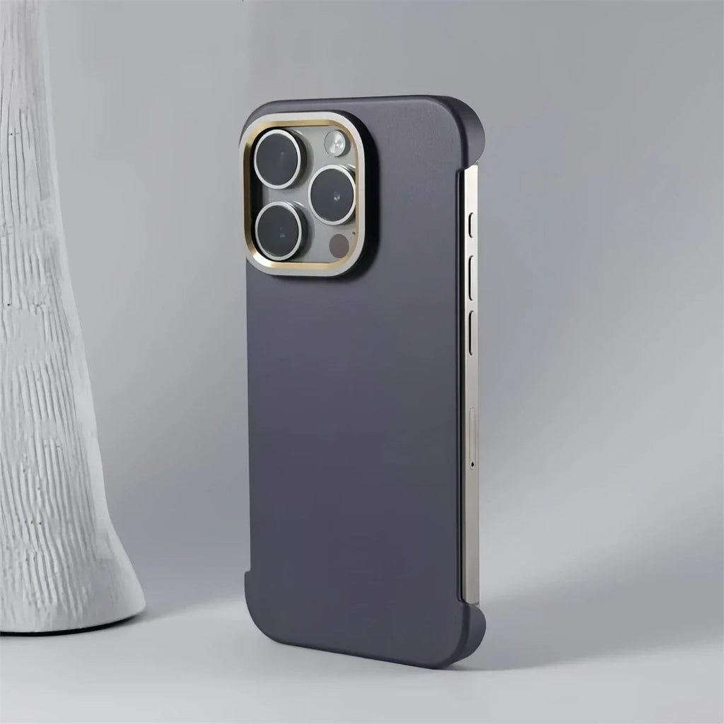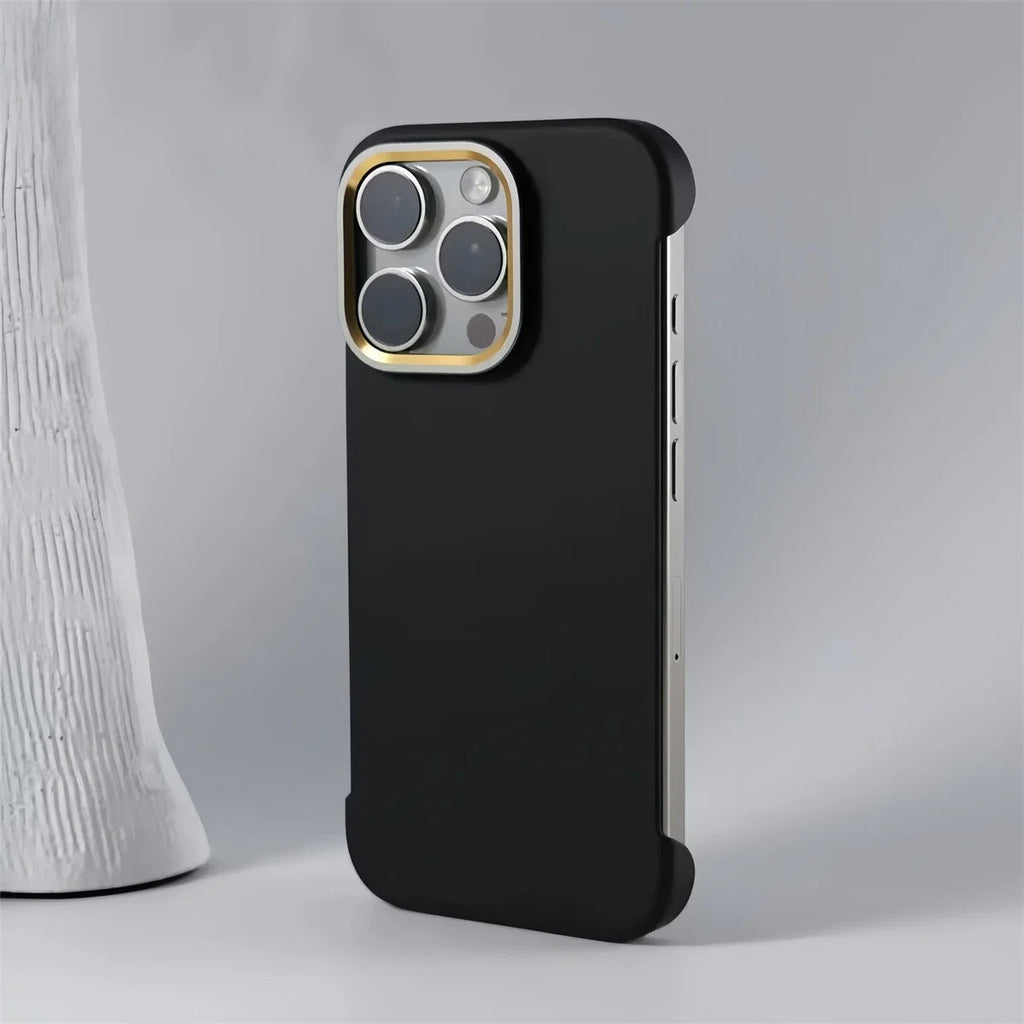 • Coque iPhone sans bordure avec motif appareil photo et accents dorés et argentés