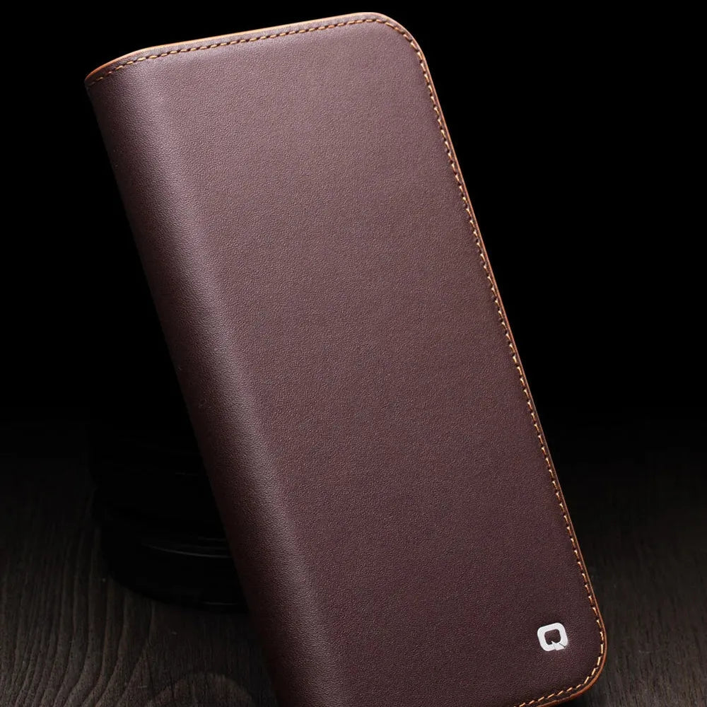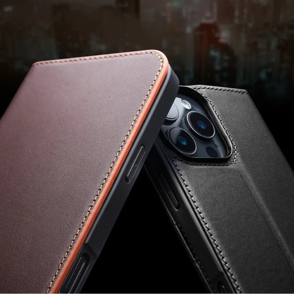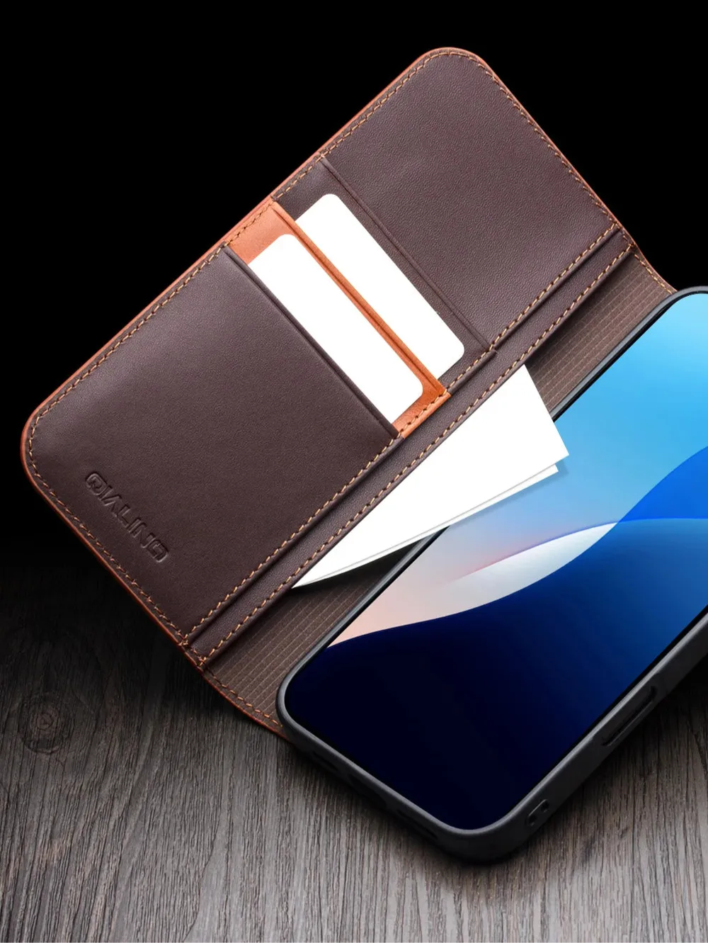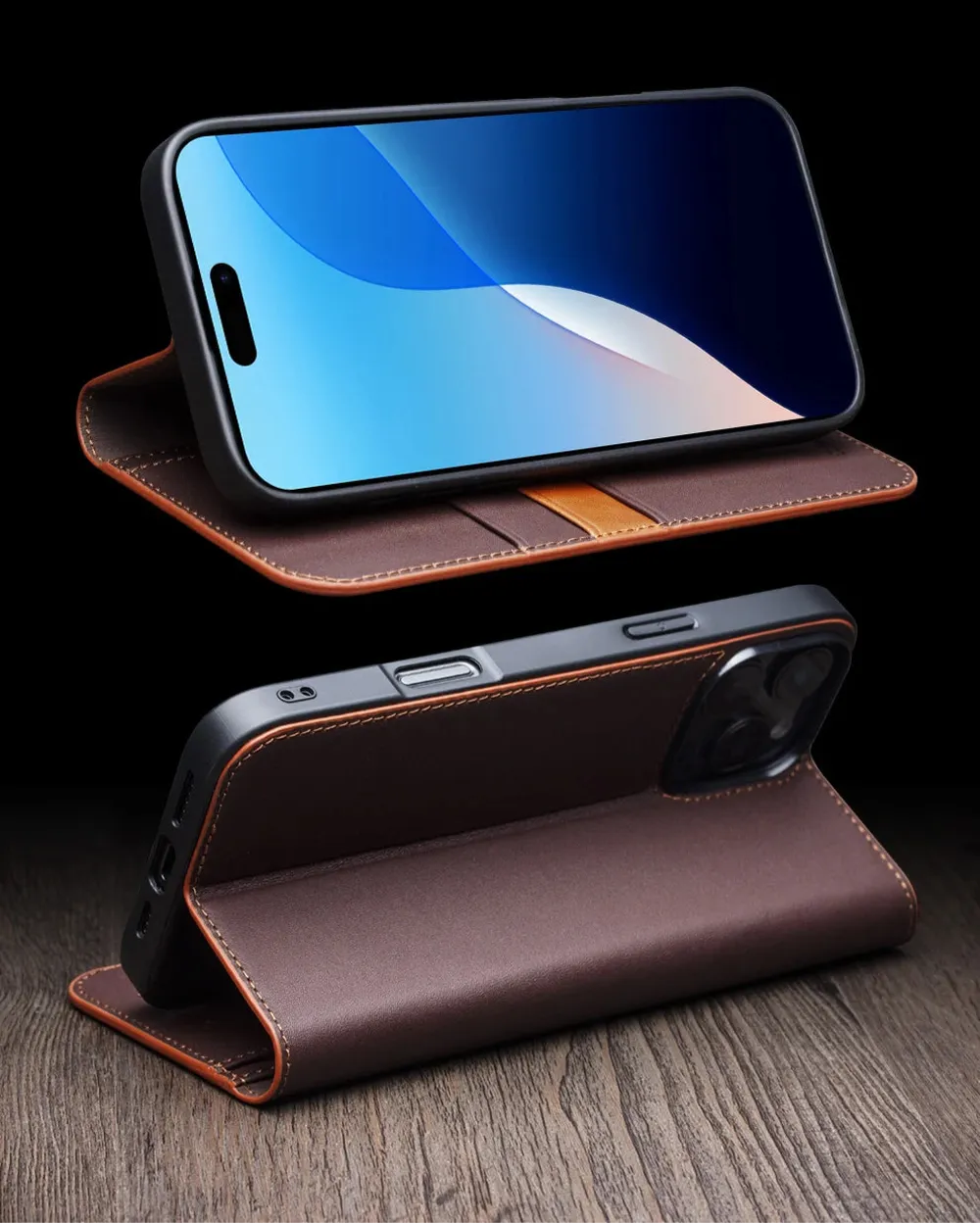 • Étui portefeuille à rabat en cuir véritable de qualité supérieure pour iPhone