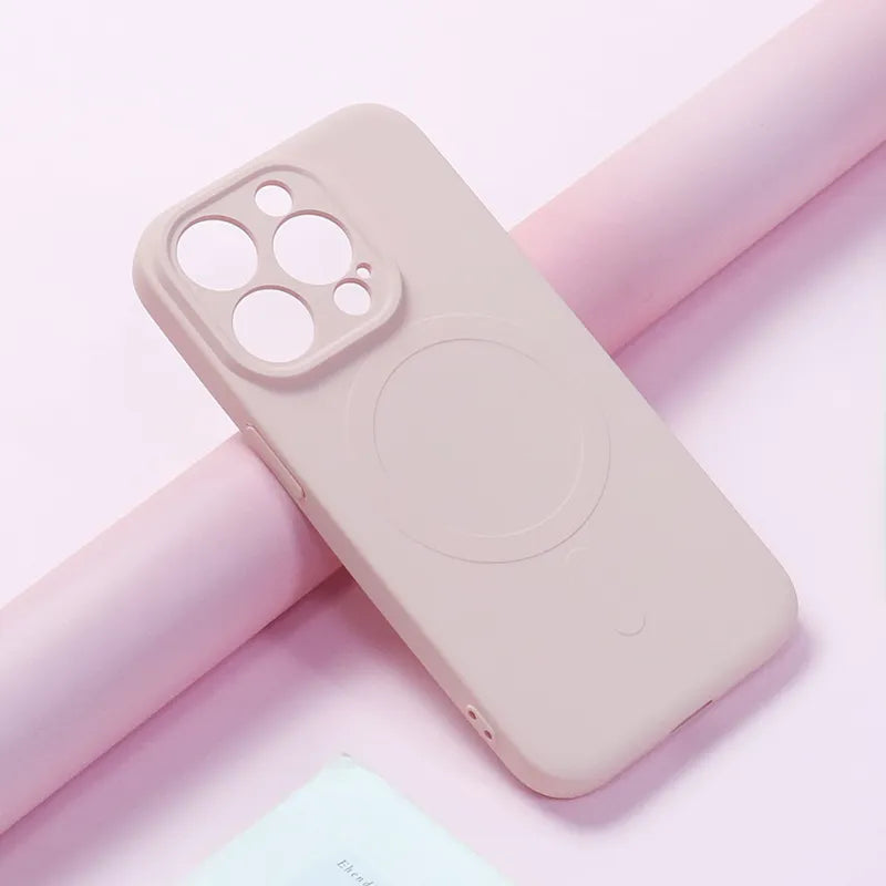 Coque iPhone en silicone liquide avec anneau de chargement MagSafe