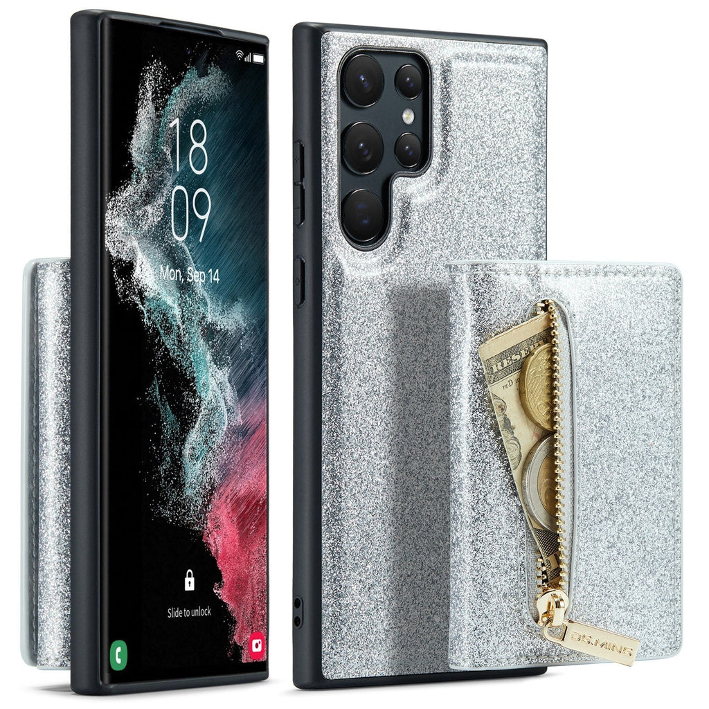 • Étui portefeuille magnétique détachable à paillettes brillantes pour téléphones Samsung
