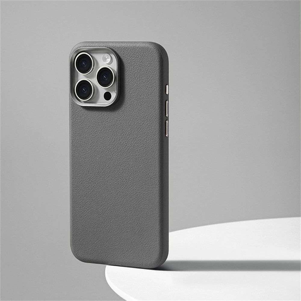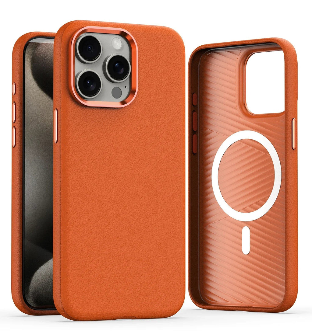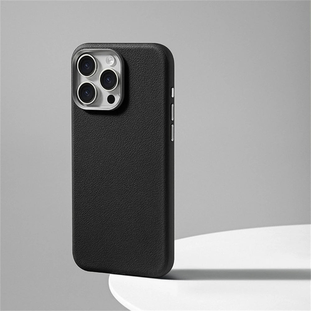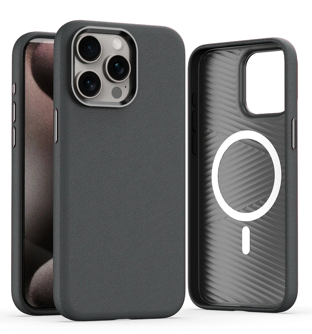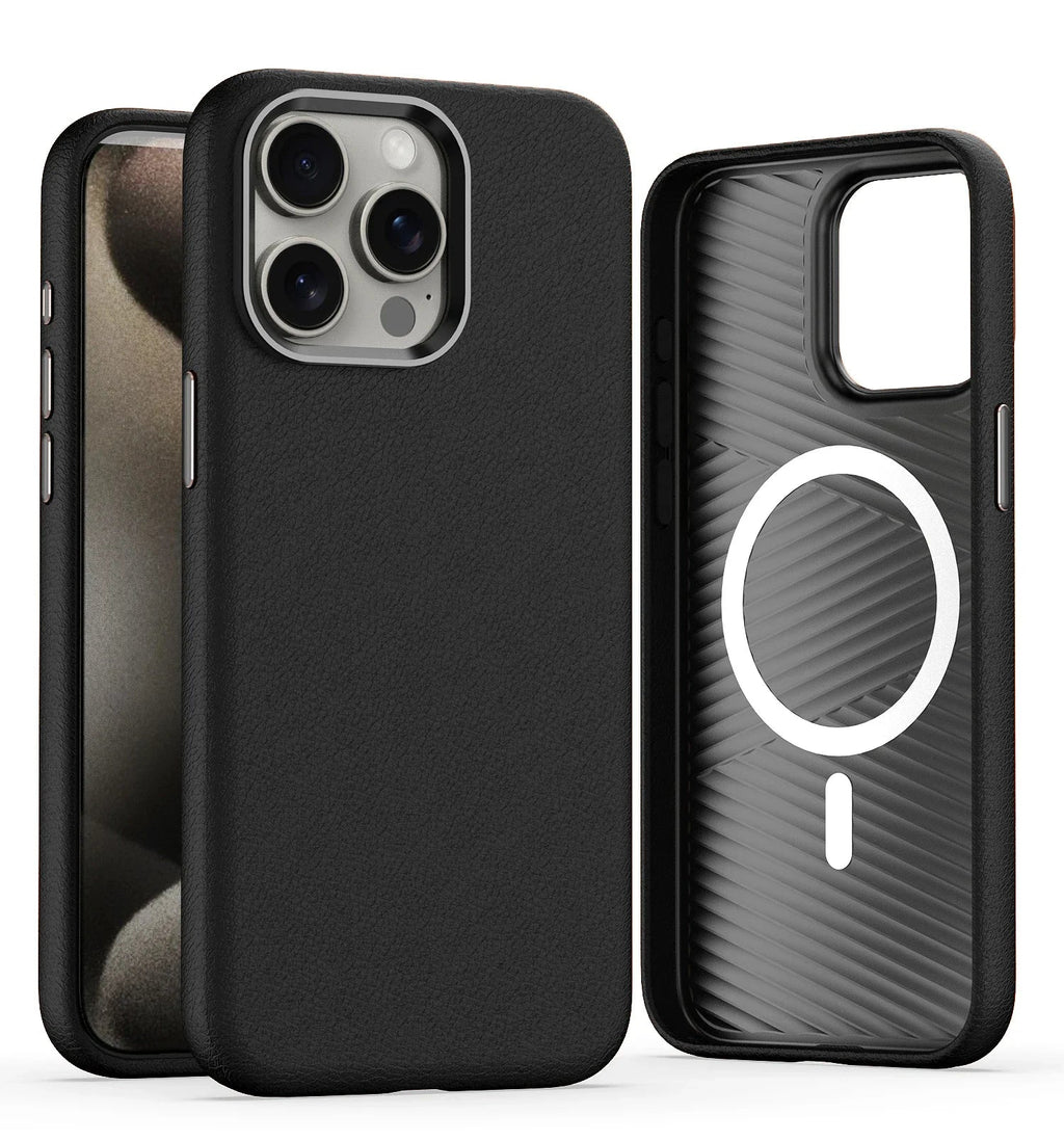 • Étui en cuir synthétique pour iPhone avec boutons métalliques