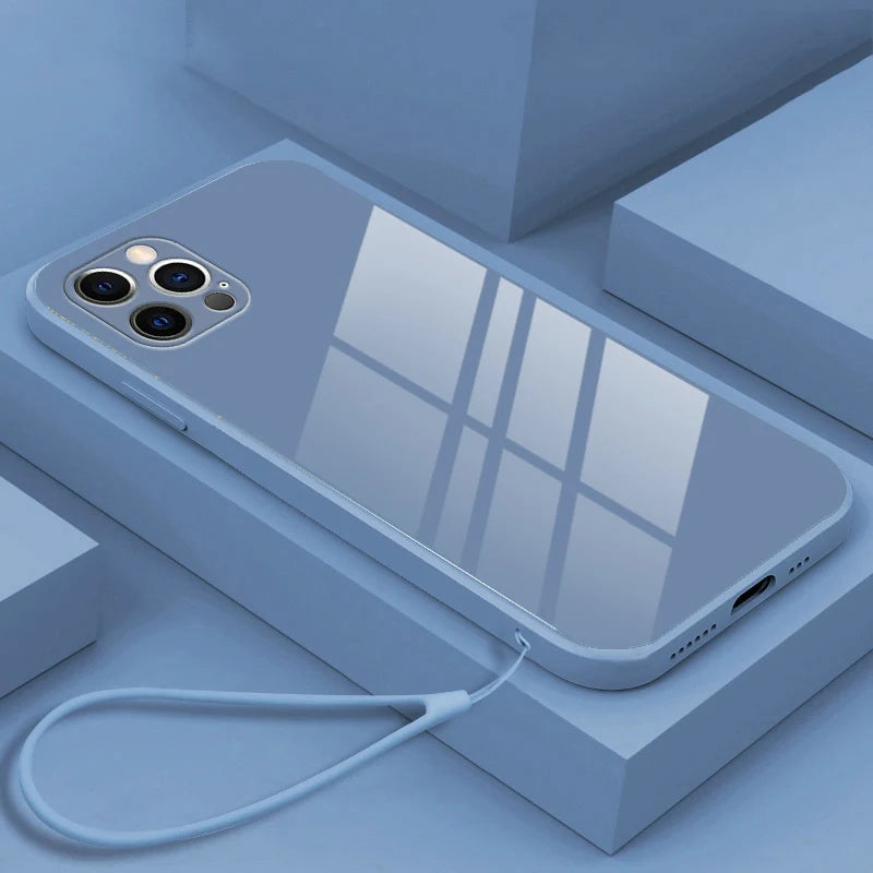 • Coque arrière en verre trempé pour iPhone avec sangle amovible