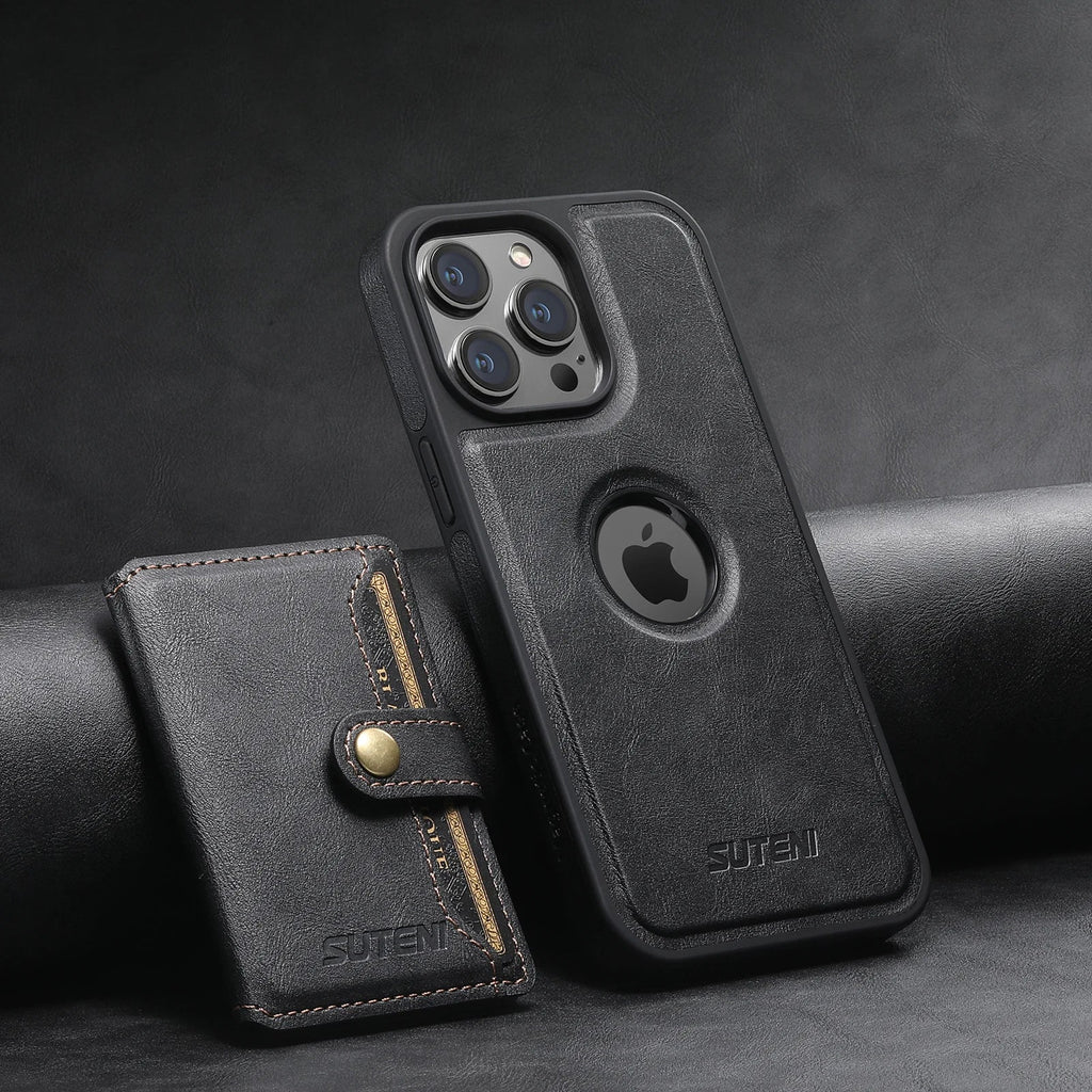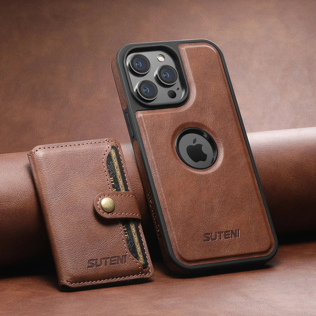 • Étui portefeuille amovible en cuir vintage pour iPhone