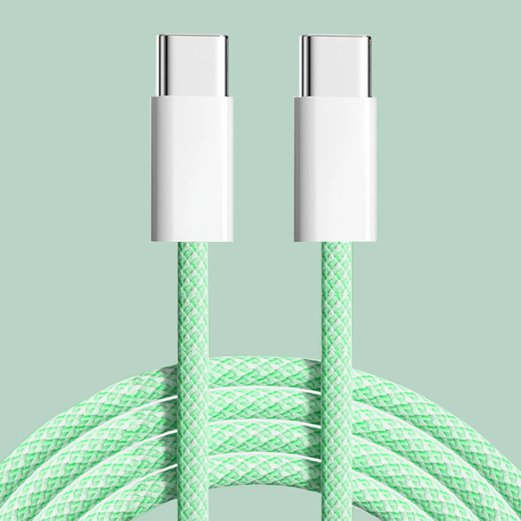 Premium quality 60W USB C to USB C cable compatible with various devices such as iPhones, Samsung Galaxy phones and tablets, Google Pixel phones and all other devices that uses USB C. This dual-color mixed nylon braided cable is not only good to look at but also practical. The cable doesn't get tangled and can bear strong load. The inbuilt smart chip helps it control current and voltage accordingly to ensure safe and fast charge.