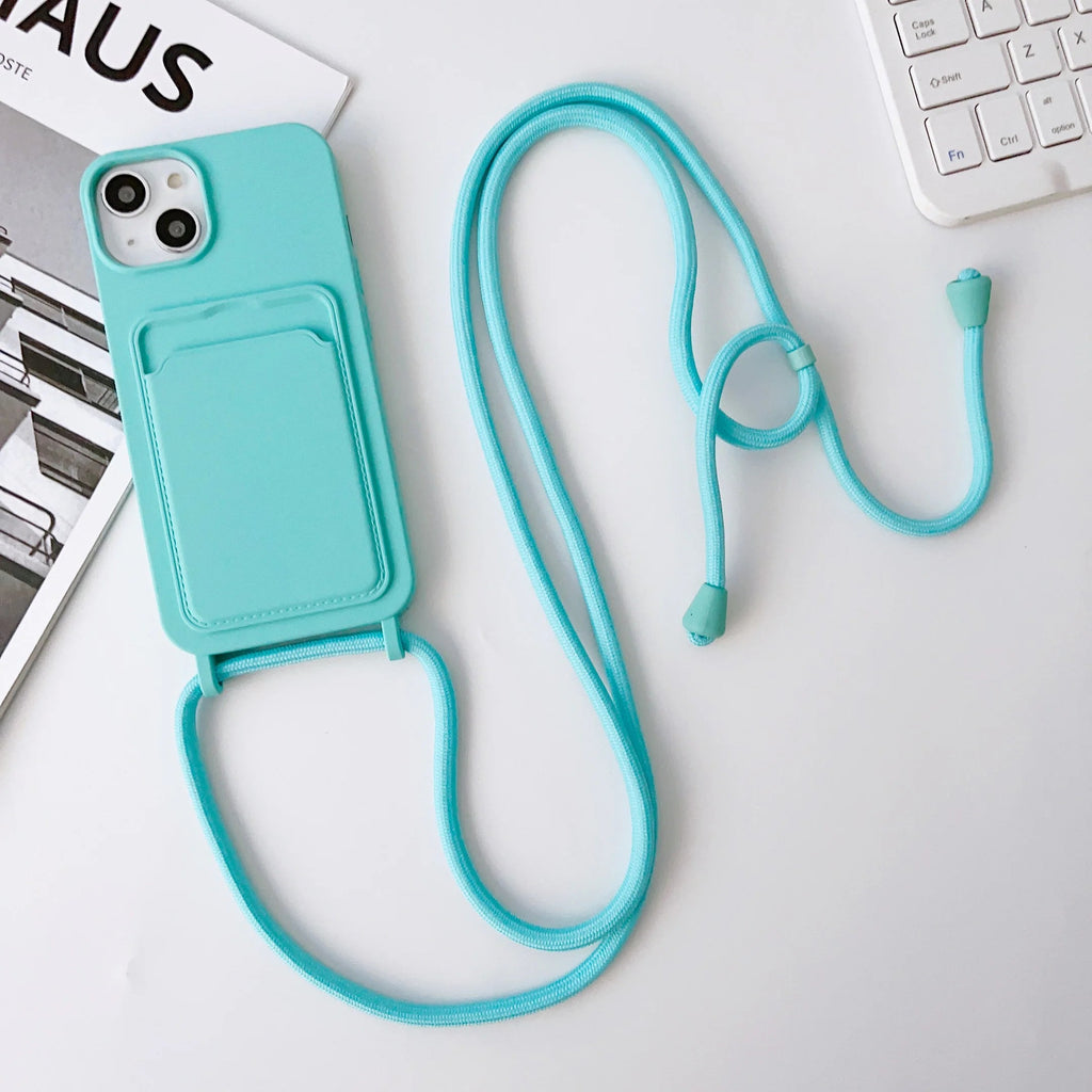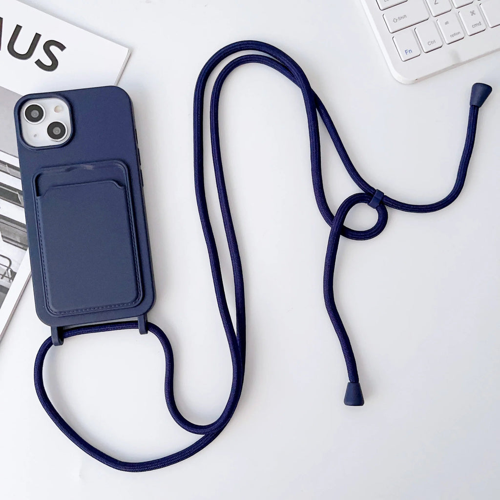 • Card Holder Silicone iPhone Case With Lanyard