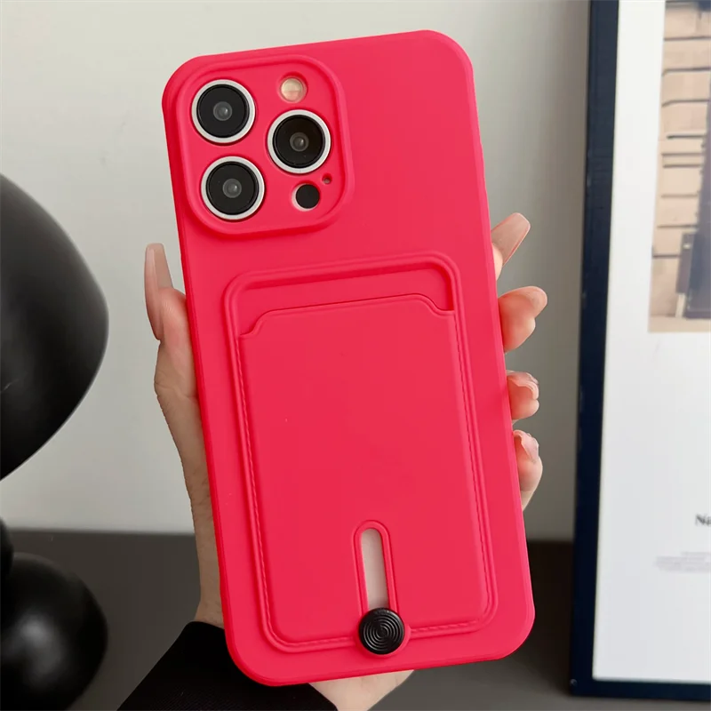 Introducing a brand new card slot iPhone case with a push slider. Made from strong and sturdy material with immaculate stitch like design. Excellent protection meets excellent practicality. The card slot can easily hold 2 cards at once and is designed in a way that holds your cards securely. Use the slider to easily pull out your card(s).