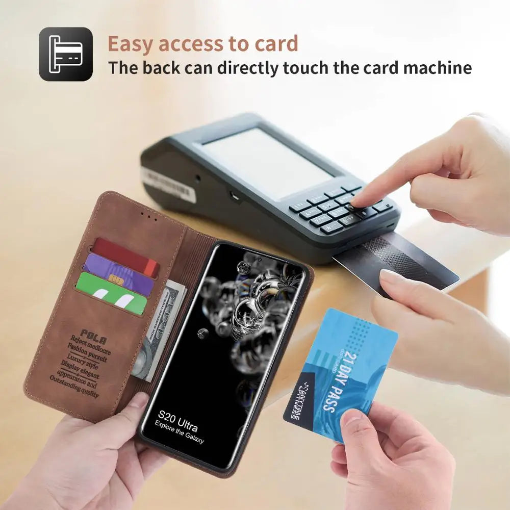 Shock absorbing high quality PU leather and TPU case with anti-fingerprint finish. Precision cutouts for buttons and charging port. Good all around protection that protects your phone from dirt, scratches and dust. Excellent fit and feel with comfortable grip. The case is slightly raised to protect the back camera and front screen against flat surfaces.