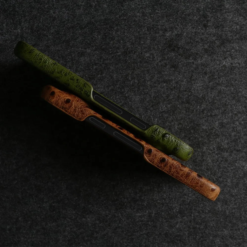 • Shock absorbing premium quality genuine ostrich leather case with anti-fingerprint finish