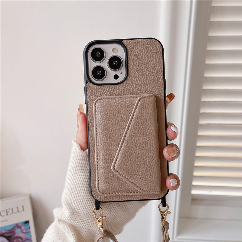 • Trendy Crossbody Shoulder Strap Wallet Apple iPhone Case